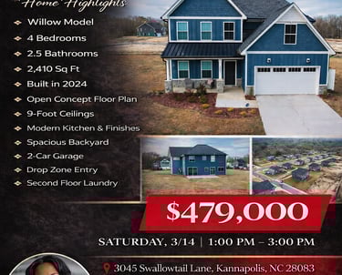 Relocate to Charlotte, NC to this beautiful new build. 4 bedrooms, 2.5 baths with Open concept living/dining/kitchen, huge primary and tons of upgrades sitting on over a quarter of an acre.